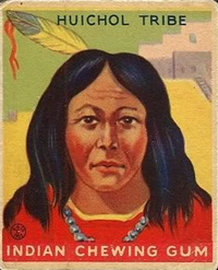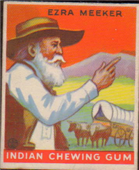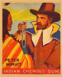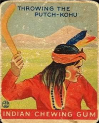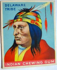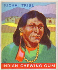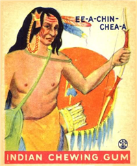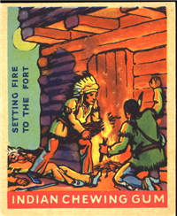 A total of 216 cards are in the set, each measuring 2 3/8 inches x 2 7/8 inches. The fronts are brightly colored, and picture scenes of Native Americans and frontier heroes. There is a possible white background variation known to exist for at least some of the cards. Another variation involves the advertisement panel on the bottom portion of the card reading Indian Chewing Gum, as it is usually red but can also be rarely found in blue.