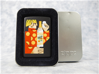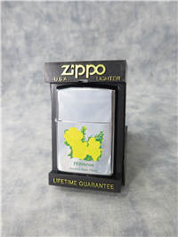 ZIPPO lighter. Polished Chrome finish over solid Brass with color printed design on front. Standard size 1-7/16 inches wide by 2-1/4 inches high. Bottom of lighter reads: B Zippo XIII Bradford, PA. Made in U.S.A. Sealed, with original, unfired insert.