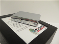 ZIPPO Cream Ultralite Chip Lighter circa 1993. Polished Chrome finish over solid Brass with front and back chips. Standard size 1-7/16 inches wide by 2-1/4 inches high. Bottom of lighter reads: D Zippo IX Bradford, PA. Made in U.S.A. Includes original, unfired insert and Zippo box.