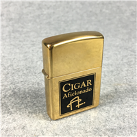 ZIPPO CIGAR AFICIONADO Lighter, 1996. Polished brass finish. Standard size 1-7/16 inches wide by 2-1/4 inches high. Bottom of lighter reads: L Zippo XII Bradford, PA. Made in U.S.A. Sealed, with original unfired insert.