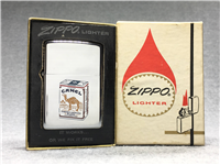 Only 100 of these lighters were made worldwide. Designed for the South African Market for the Artist Pack Series. ZIPPO Camel Egypt Design lighter circa 2001. CZ432. Cream Matte finish over Brass. Standard size 1-7/16 inches wide by 2-1/4 inches high. Bottom of lighter reads: Zippo E 2001 XVI Bradford, PA. Made in U.S.A.