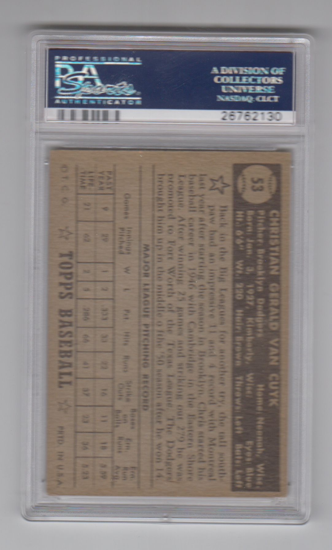 You have: 1952 Topps Baseball Card #53 Van Cuyk Chris