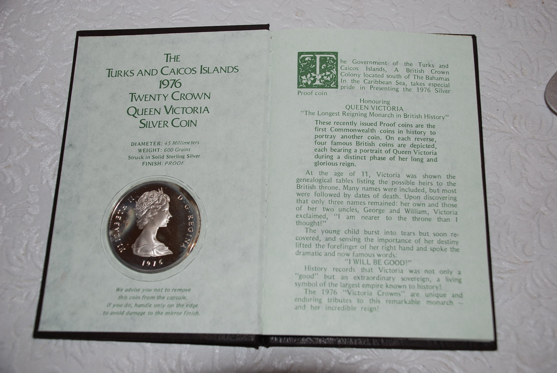 You have: TURKS & CAICOS ISLANDS 1976 20 Crown Silver Coin KM 14