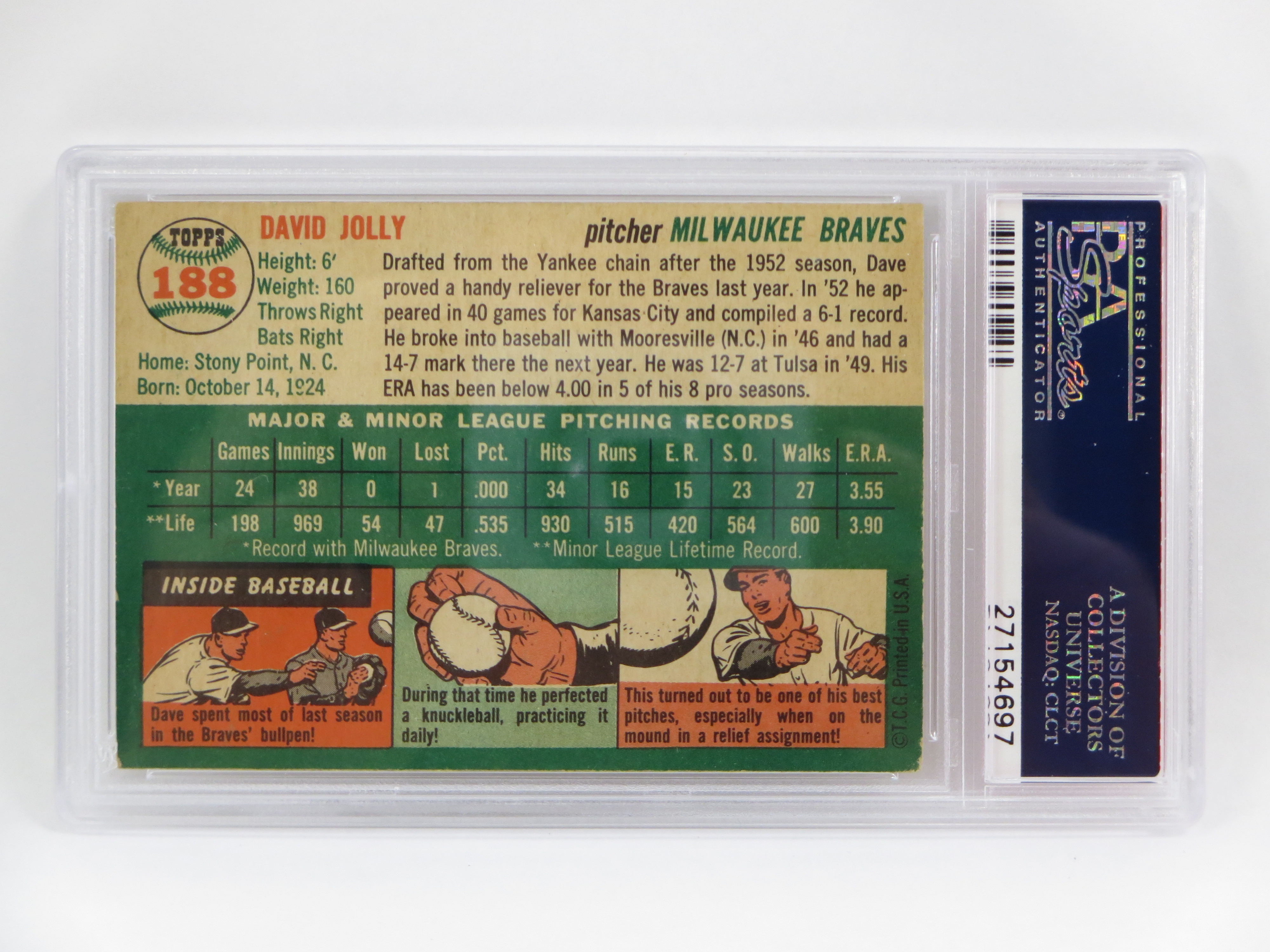 You have: 1954 Topps DAVE JOLLY Baseball Card #188