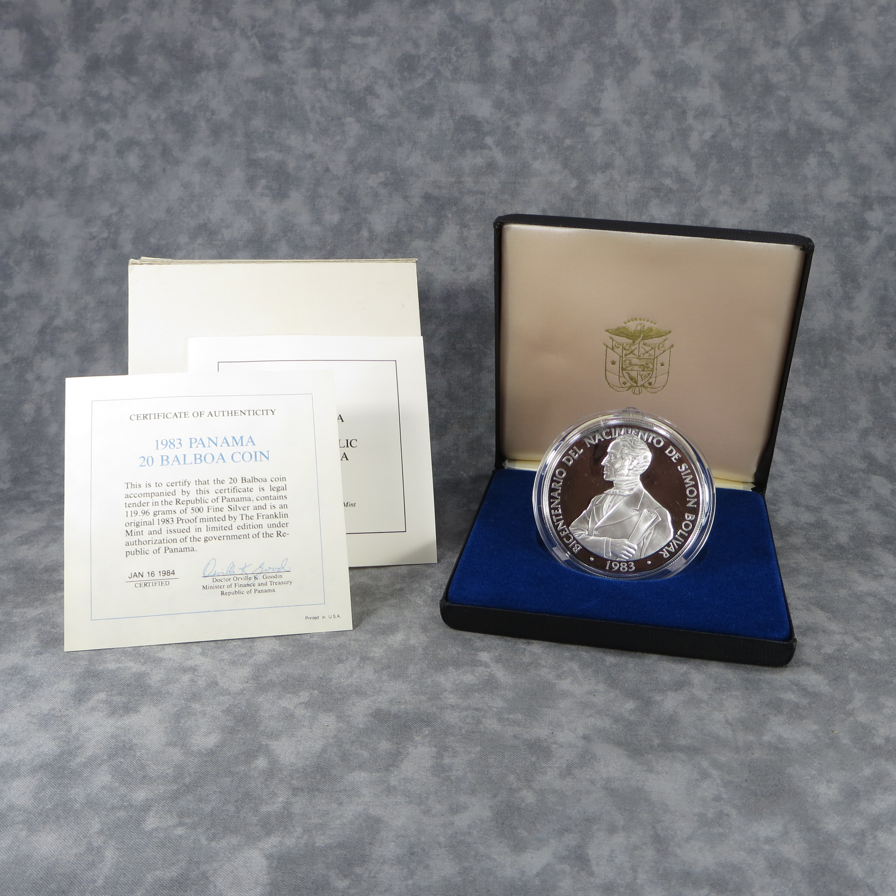 You have: PANAMA 20 Balboas Silver Proof Coin (Franklin Mint, 1983)