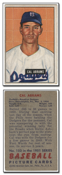 You have: 1951 Bowman Baseball Card #152 Cal Abrams