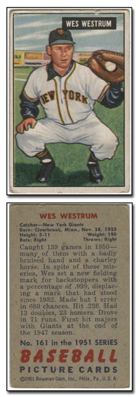 You have: 1951 Bowman Baseball Card #161 Wes Westrum