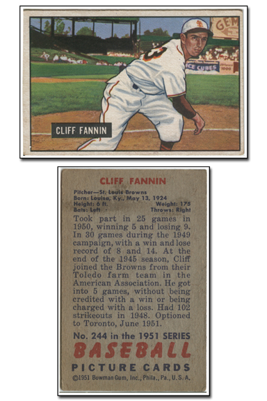 You have: 1951 Bowman Baseball Card #244 Cliff Fannin