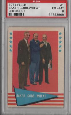 1961-62 Fleer #1 Checklist (Frank Baker, Ty Cobb, Zach Wheat)