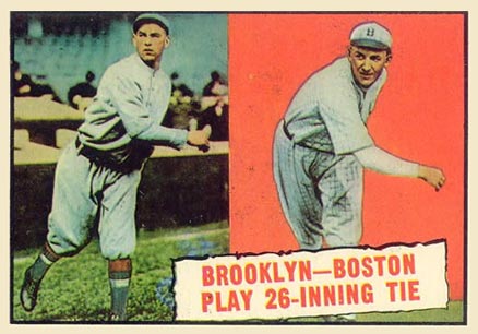 You have: 1961 Topps Baseball Card #403 Brooklyn-Boston Play 26-Inning Tie