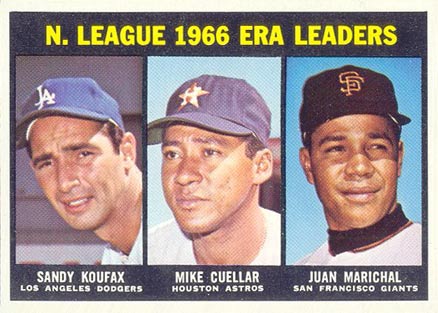 1967 Topps Baseball Card #234 NL ERA Leaders (Koufax, Marichal, etc.)