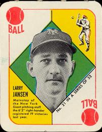 You have: 1951 Topps Red Backs Baseball Card #21 Larry Jansen