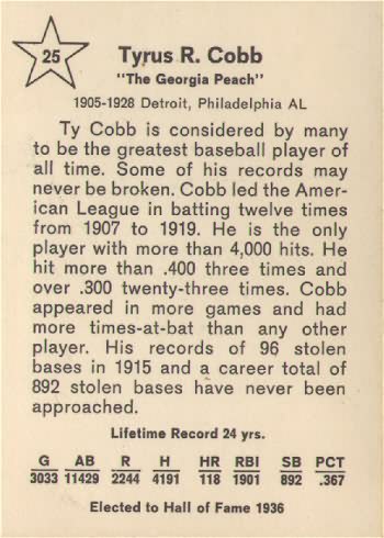 1961 Golden Press Baseball Card #25 Ty Cobb (Hall of Fame)