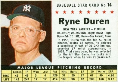 1961 Post Cereal Box Baseball Card #14 Ryne Duren (box)