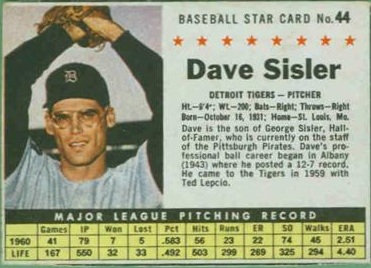 1961 Post Cereal Box Baseball Card #44 Dave Sisler (box)