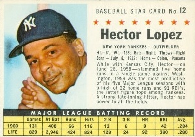 You have: 1961 Post Cereal Box Baseball Card #12b Hector Lopez (company)