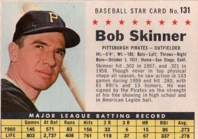 You have: 1961 Post Cereal Box Baseball Card #131b Bob Skinner (company)