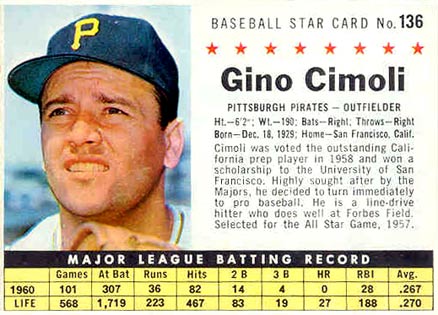 You have: 1961 Post Cereal Box Baseball Card #136a Gino Cimoli (box)