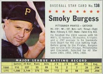 1961 Post Cereal Box Baseball Card #138a Smoky Burgess ( box)