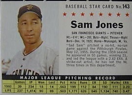 You have: 1961 Post Cereal Box Baseball Card #143b Sam Jones (company)