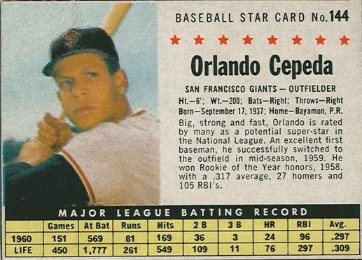 You have: 1961 Post Cereal Box Baseball Card #144a Orlando Cepeda (box)