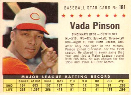 You have: 1961 Post Cereal Box Baseball Card #181b Vada Pinson (company)