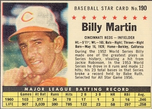 You have: 1961 Post Cereal Box Baseball Card #190b Billy Martin ( company, sold line)