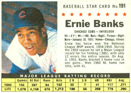 You have: 1961 Post Cereal Box Baseball Card #191a Ernie Banks (box)