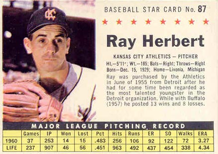 You have: 1961 Post Cereal Box Baseball Card #87b Ray Herbert (company)