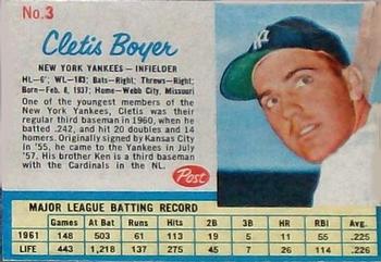 1962 Post Cereal Box Baseball Card #3 Cletis Boyer