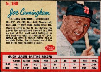 1962 Post Cereal Box Baseball Card #160 Joe Cunningham