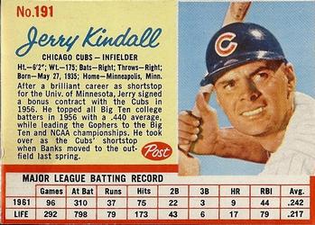 1962 Post Cereal Box Baseball Card #191 Jerry Kindall