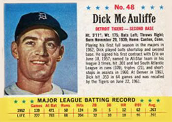 You have: 1963 Post Cereal Baseball Card #48 Dick McAuliffe