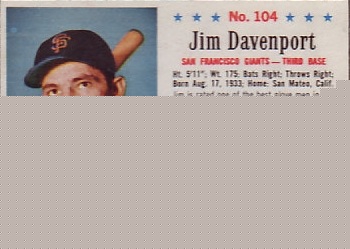 You have: 1963 Post Cereal Baseball Card #104 Jim Davenport