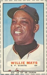 1967 Bazooka Baseball Card #16 Willie Mays (Hall of Fame)