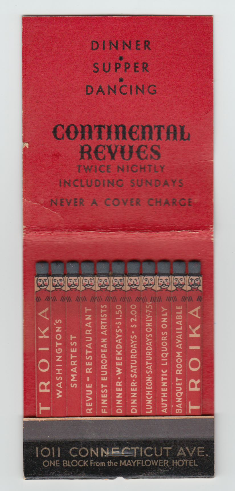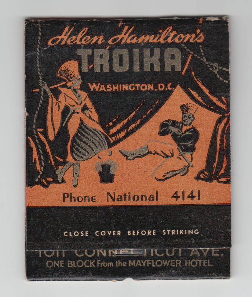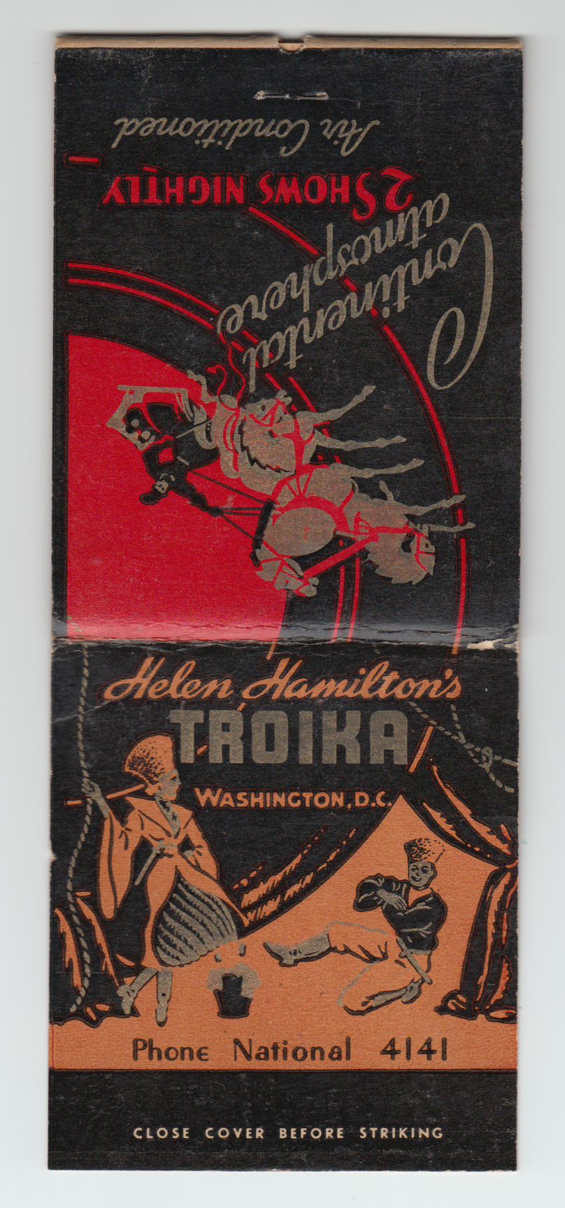 You have: 1940s Helen Hamilton's Troika Continental Revues Washington DC Matchbook