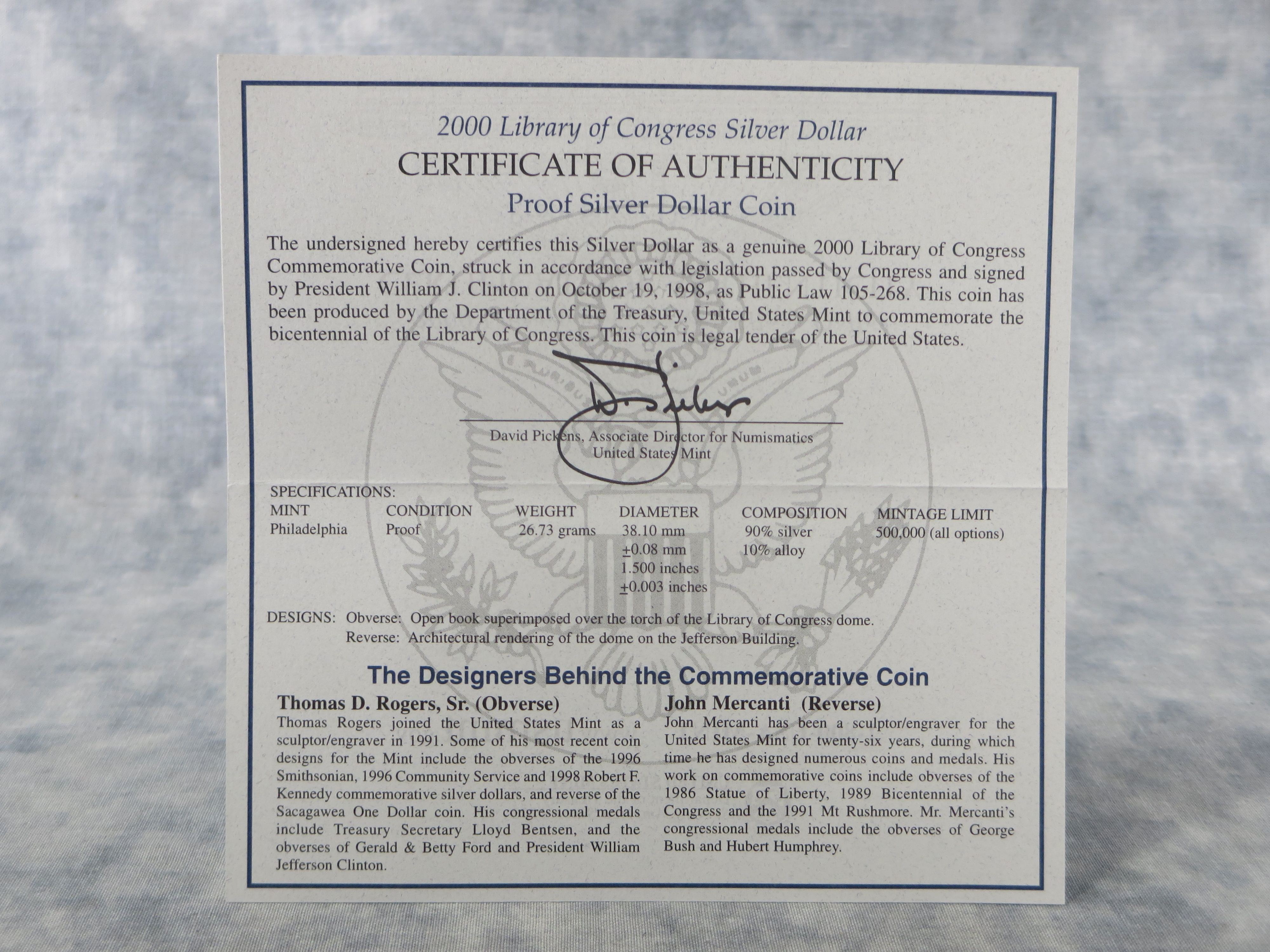 You have: 2000-P Library of Congress Proof Silver Dollar