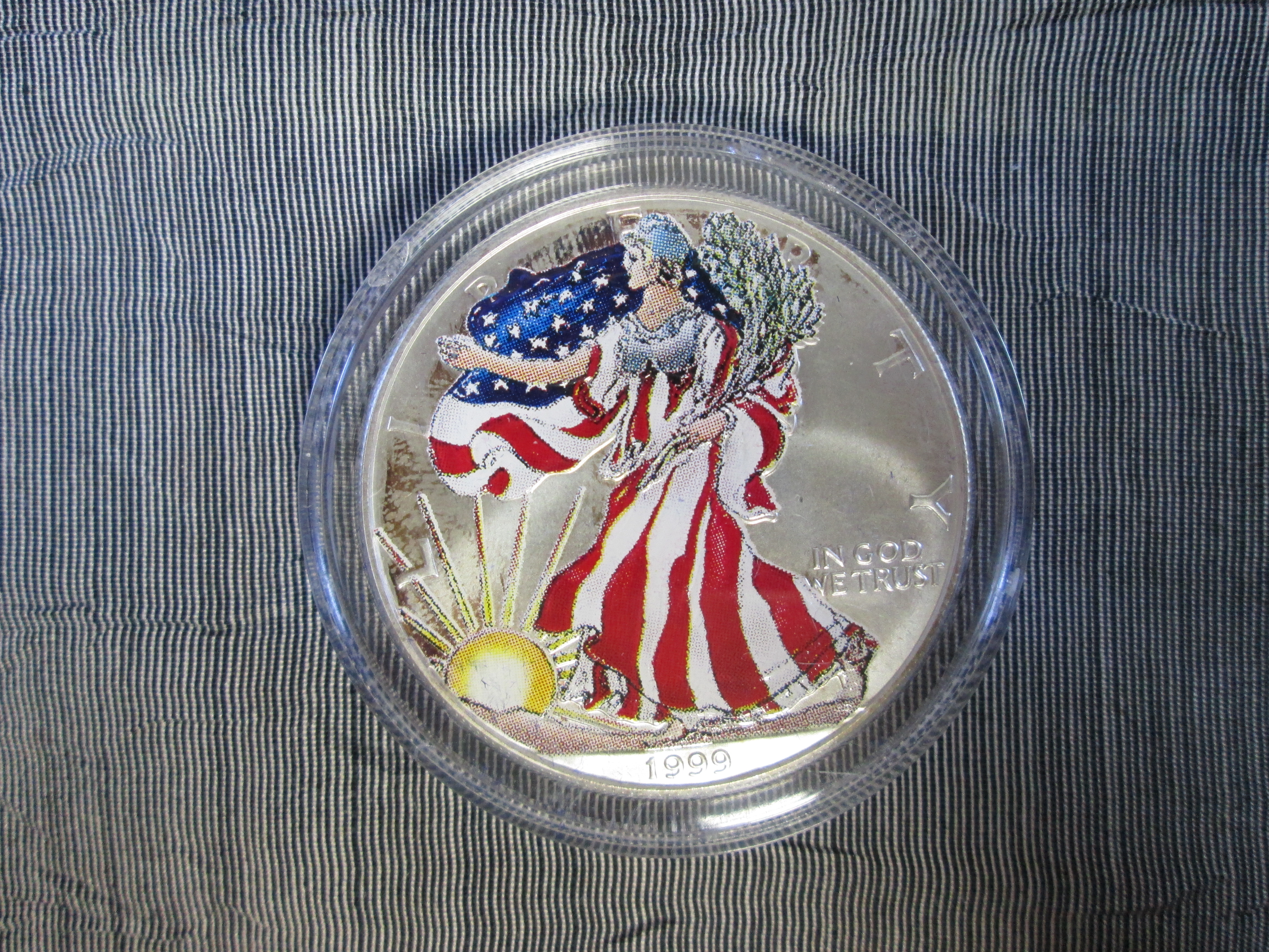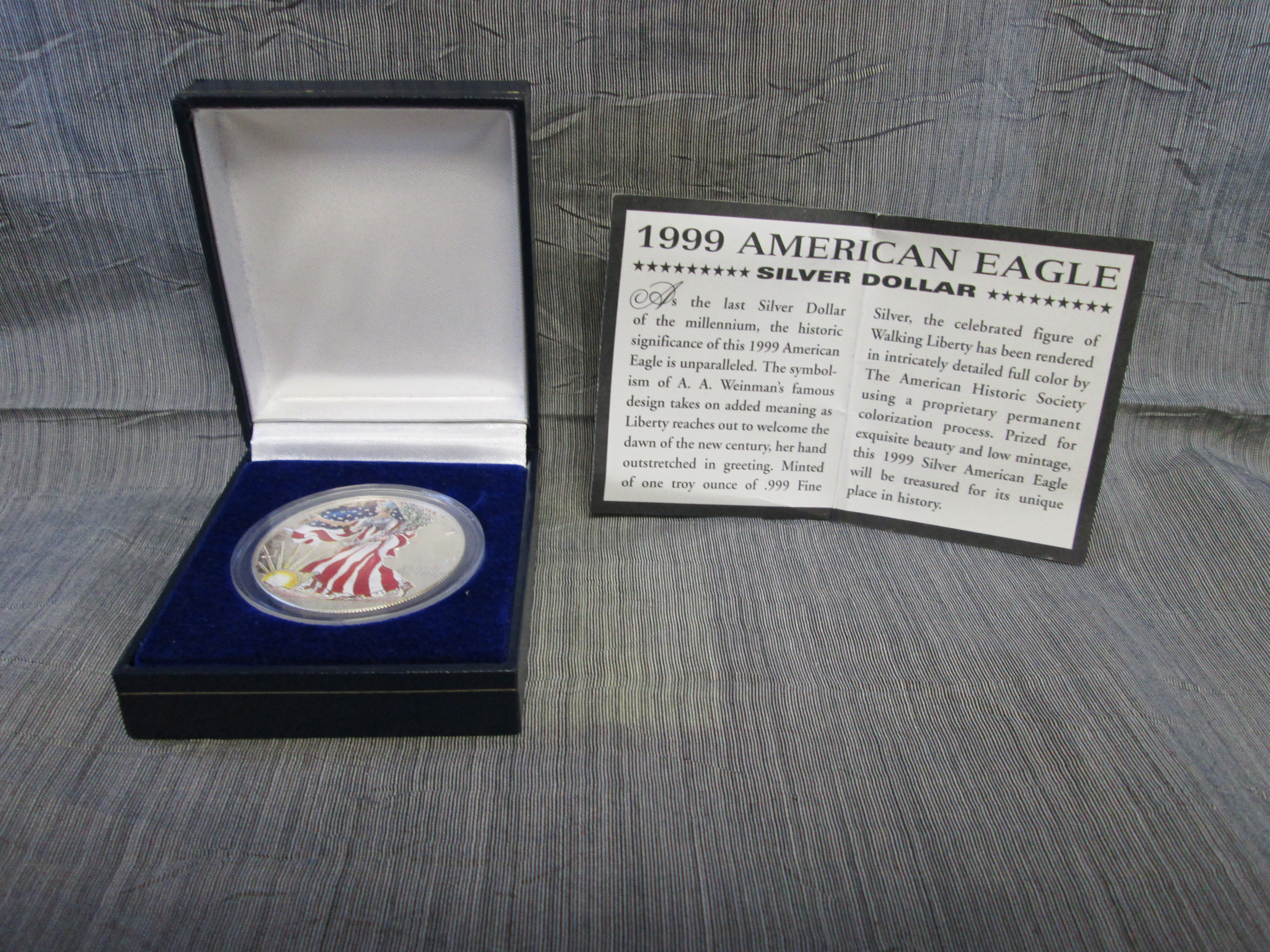 You have: 1999 American Eagle Proof Silver Colorized Dollar
