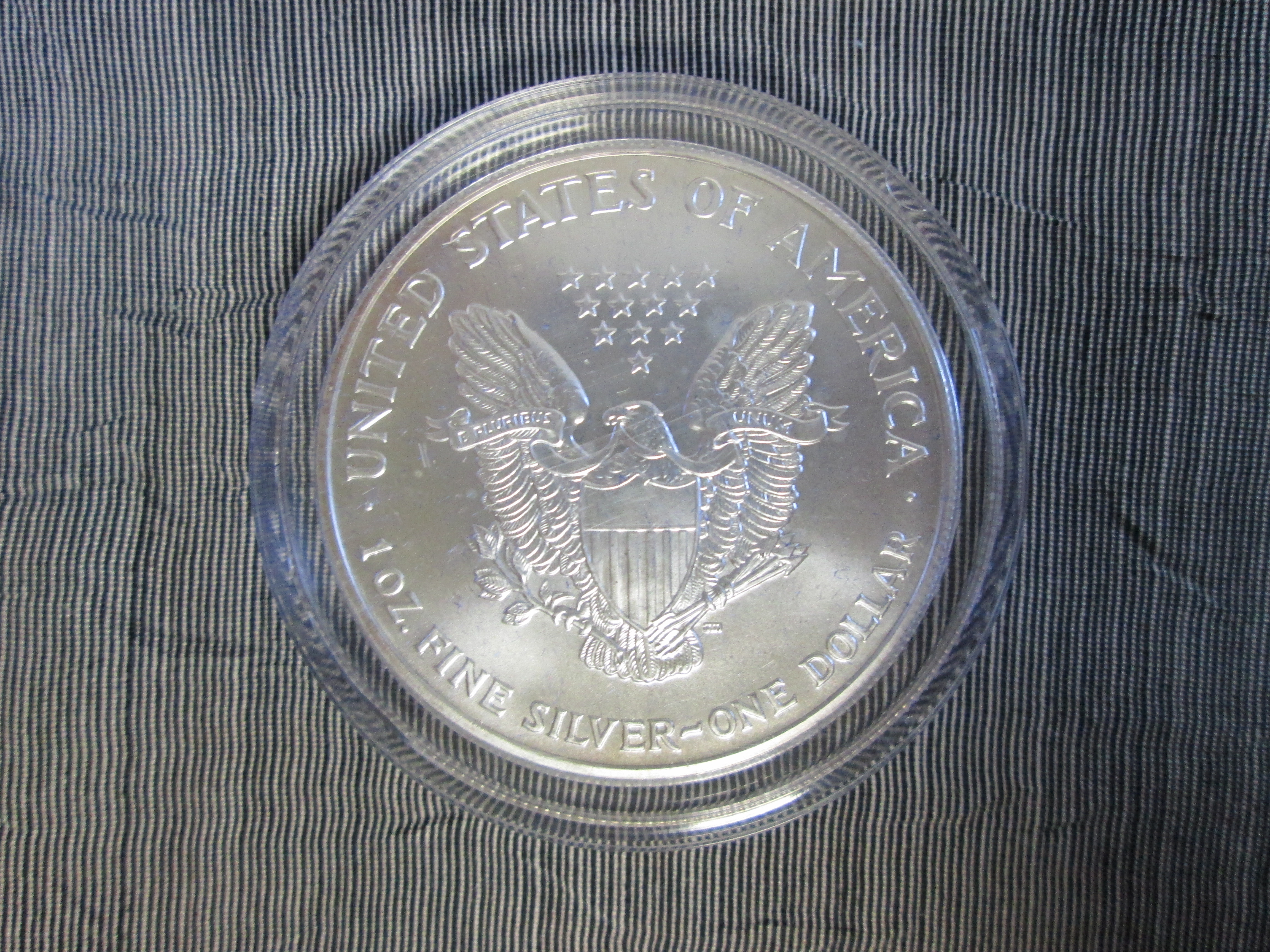 The Liberty Coin Act of 1985 authorized the U.S. Mint to strike and issue one dollar coins containing one troy ounce of .999 silver in quantities to meet public demand. The legislation provides that the design of the coin shall be symbolic of Liberty on the obverse with an eagle on the reverse. The coin has an inscription of the year of minting or issuance, the words 'Liberty', 'In God We Trust', 'United States of America' and a reeded edge as stipulated by law.
