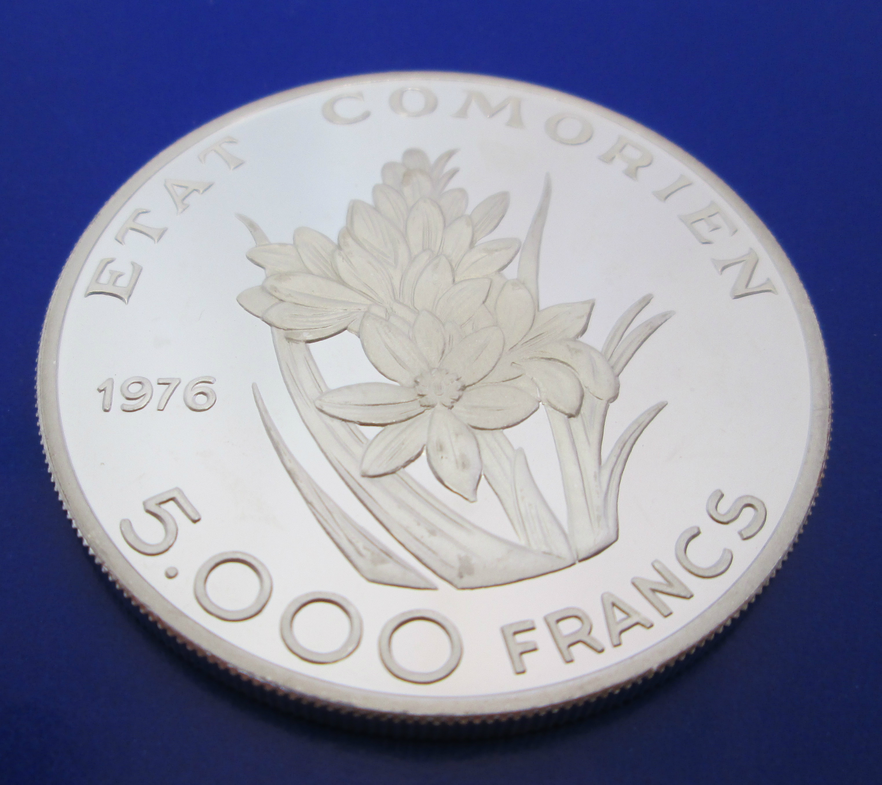 You have: 1976 Comoros 5000 Francs Etat Comorien Silver Coin