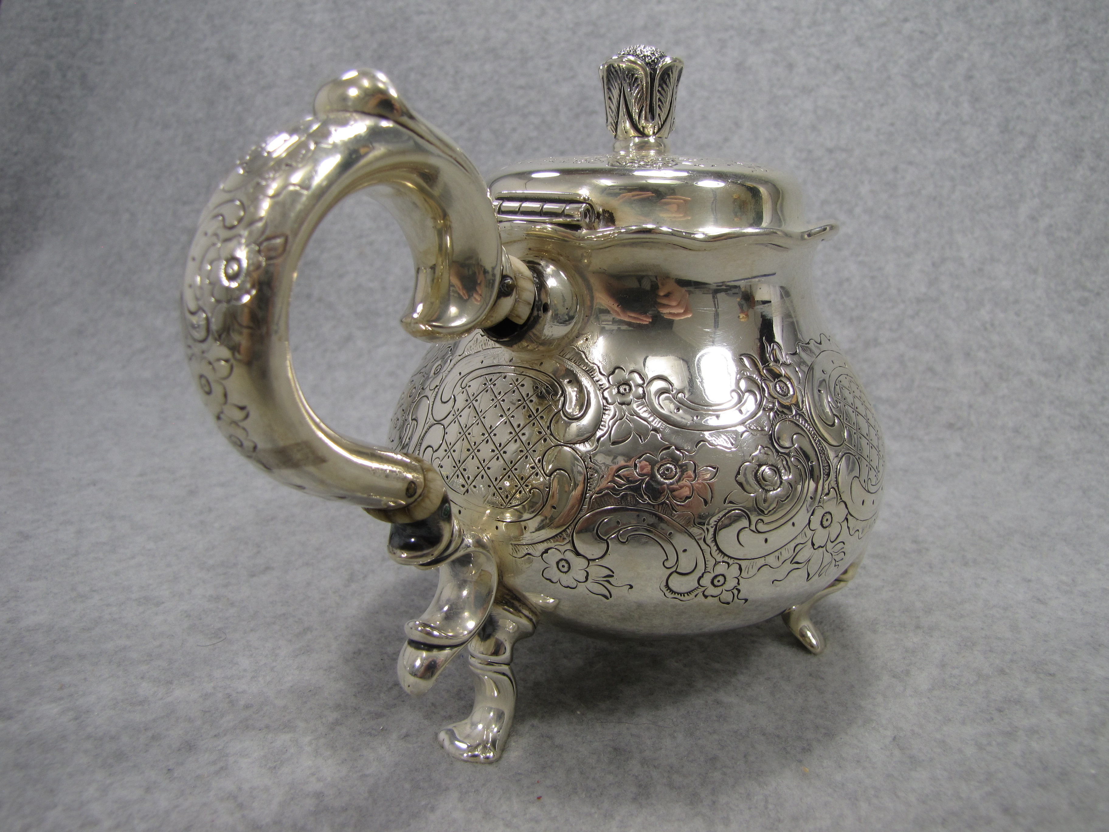 You have: Floral Cross Hatching Sterling 5" X 7 1/4" Tea Pot (Tiffany & Co, #4531)