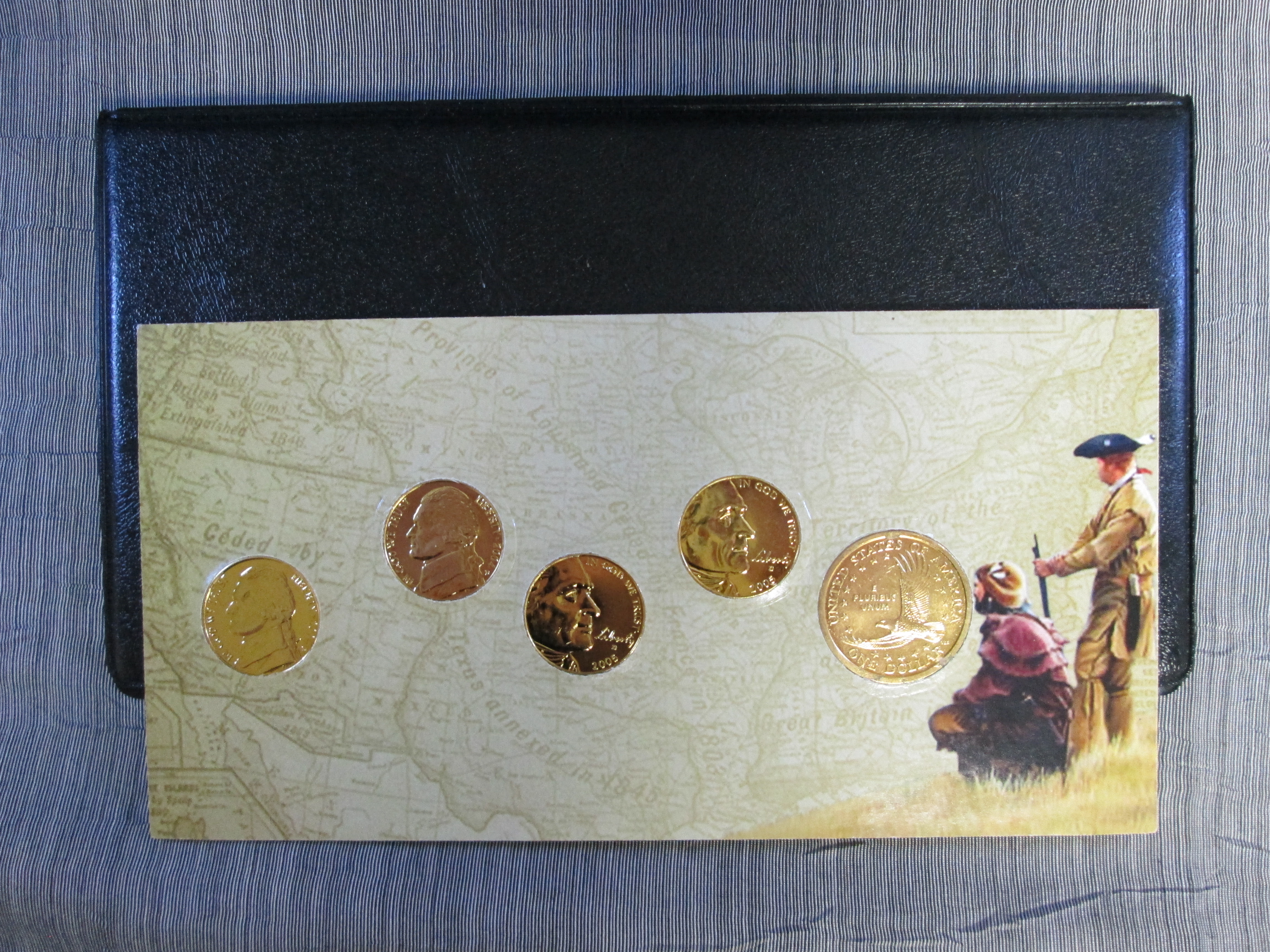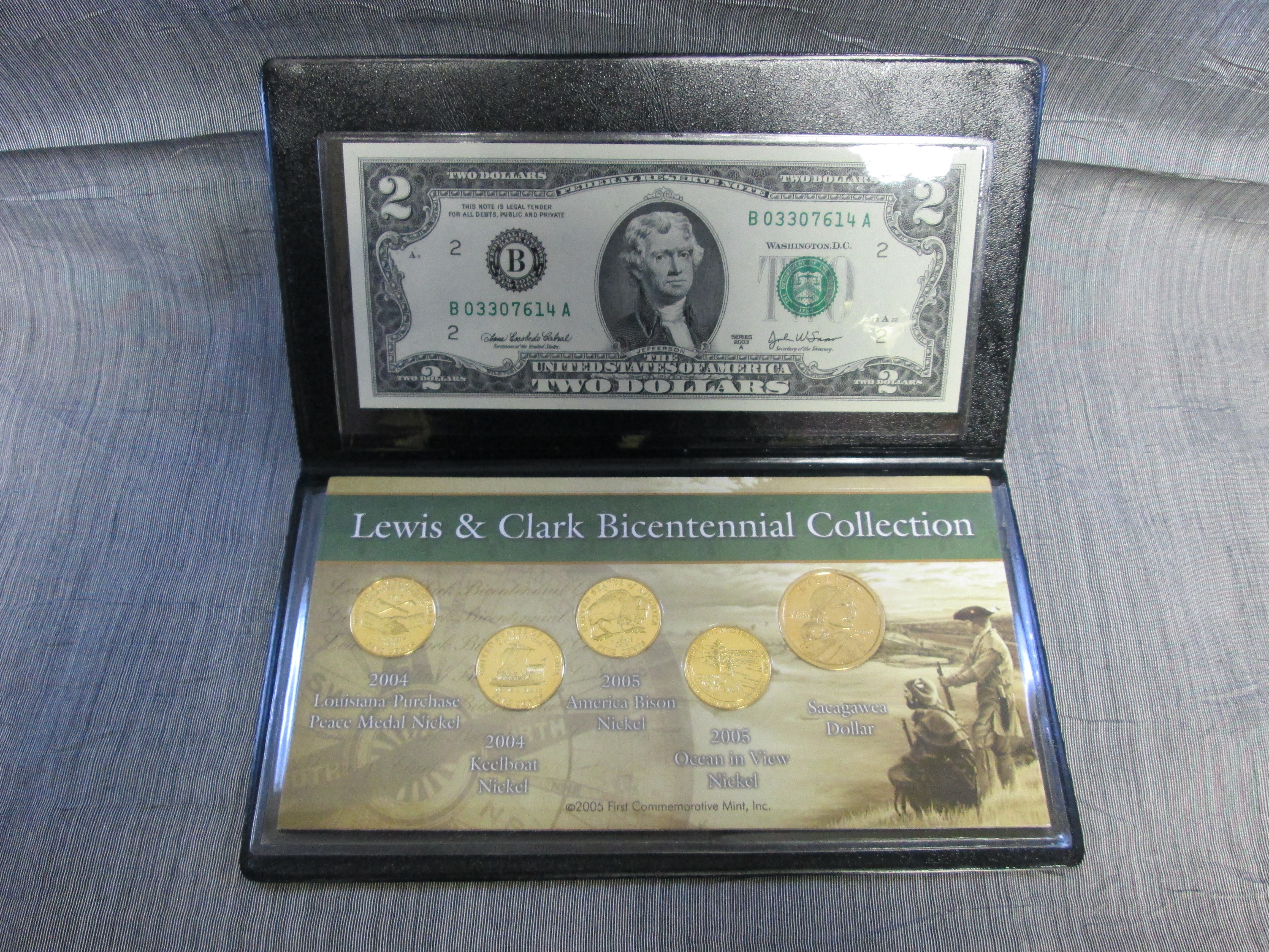 December 04, 2025 - Honoring the 200 anniversary of the Louisiana Purchase and the Lewis and Clark Expedition. Includes the complete set of four 2004-2005 commemorative Nickels. Also included is a Sacagawea Golden Dollar, the Native American guide on the Lewis and Clark Expedition. The $2 bill features the portrait of Thomas Jefferson, who was President at the time of the Lewis and Clark Expedition. The complete collection is displayed in a collector’s wallet.