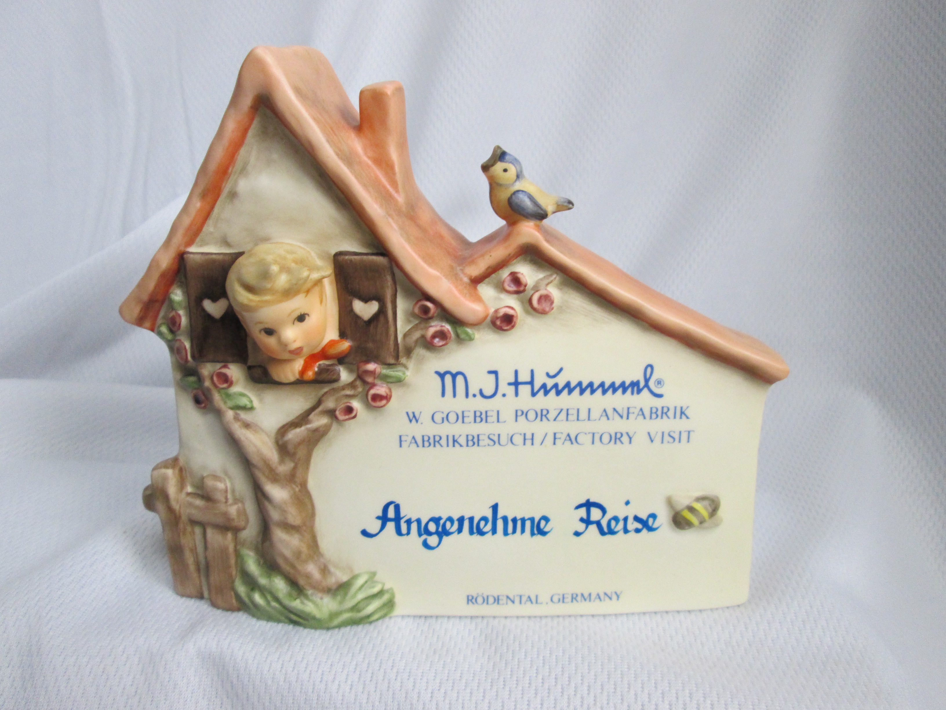 January 16, 2026 - Special plaque given to visitors of the Goebel factory in Rodental, Germany. The plaque reads: M. I. Hummel W. Goebel Porcellanfabrik Fabrikbesuch/Factory Visit Angenehme Reise  Rodental, Germany. 4 1/4 inches tall by 5 inches wide. Base is incised 822 and 1997. Goebel TMK 7 trademark imprinted in blue on bottom of base. Artist hand initialed and dated in black ink.
