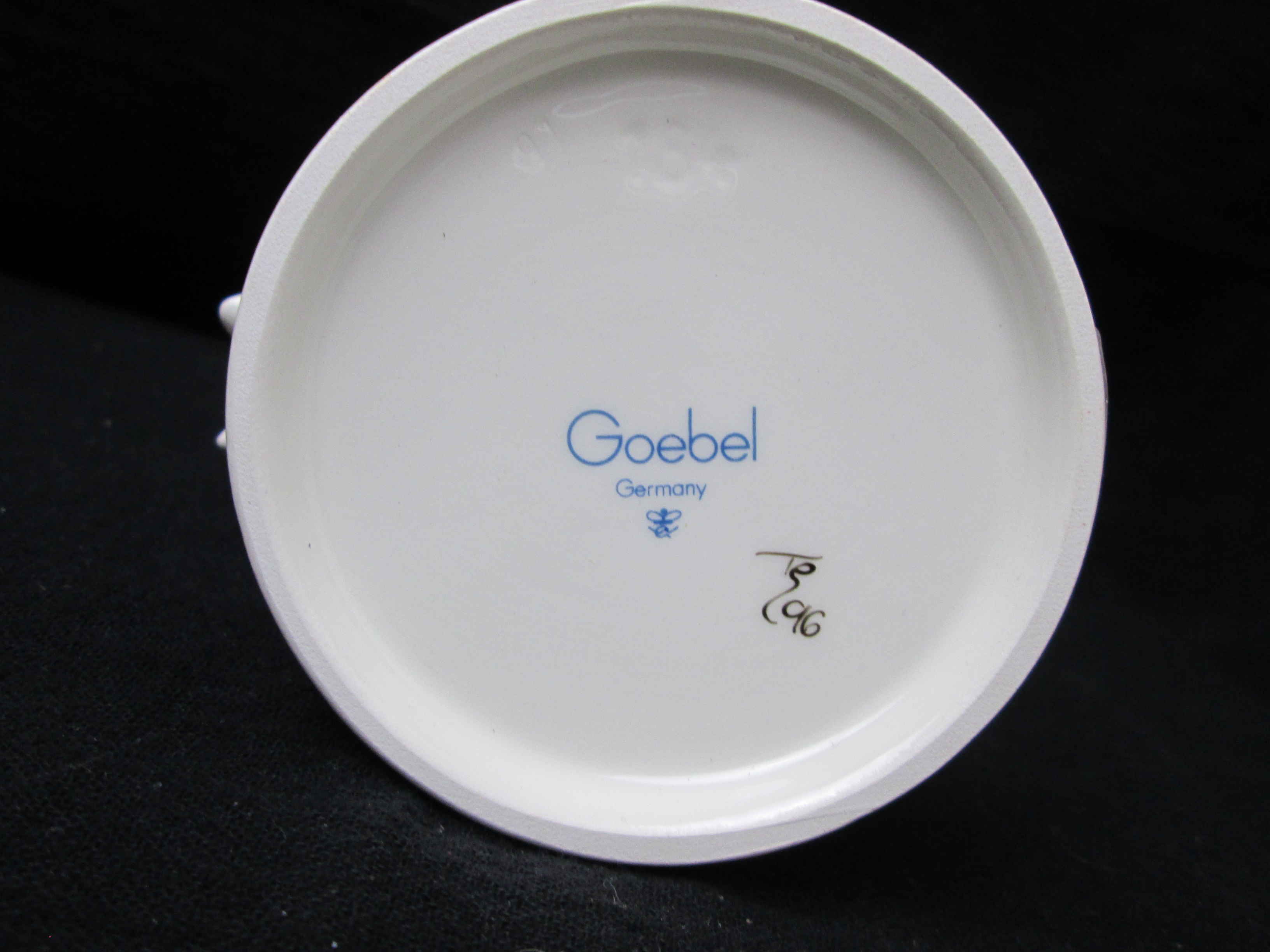 November 19, 2025 - 5 inches tall. Base is incised 184 . Goebel TMK 7 trademark imprinted in blue on bottom of base. Artist hand initialed and hand dated in black ink.