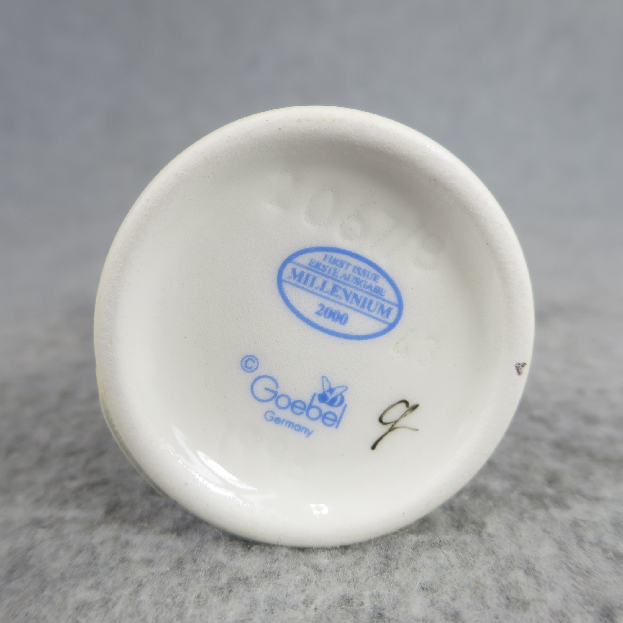 January 18, 2026 - 3 1/2 inches tall. Base is incised 2067 B and 1998. Goebel TMK 8 trademark and nd 'FIRST ISSUE -- ERSTE AUSGABE -- MILLENNIUM 2000' imprinted in blue on bottom of base. Artist hand initialed in black ink.