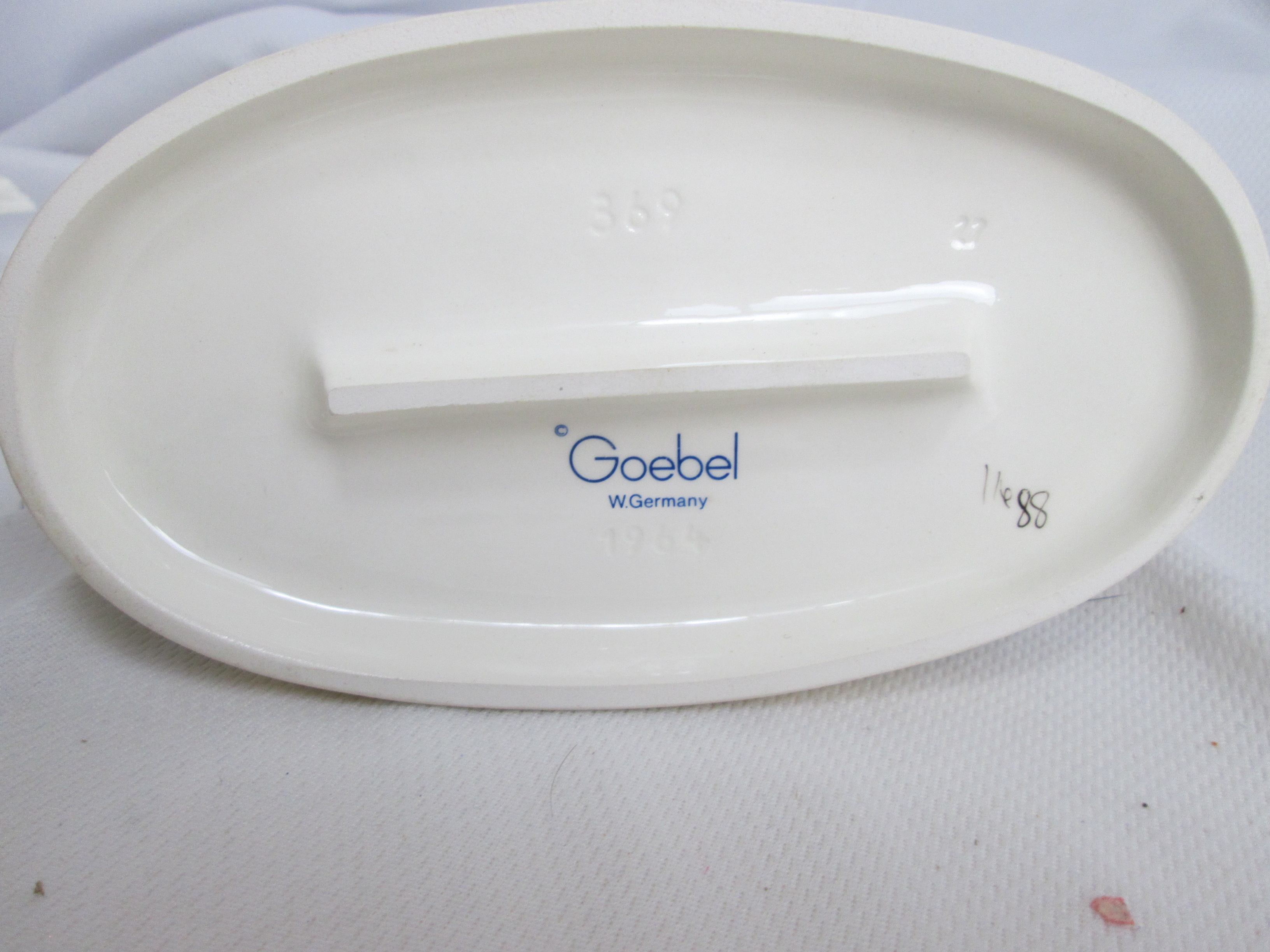 January 16, 2026 - 7 inches tall by 5 1/2 inches at base. Base is incised 369 and 1964. Goebel TMK 6 trademark imprinted in blue on bottom of base. Artist hand initialed and dated 88 in black ink.