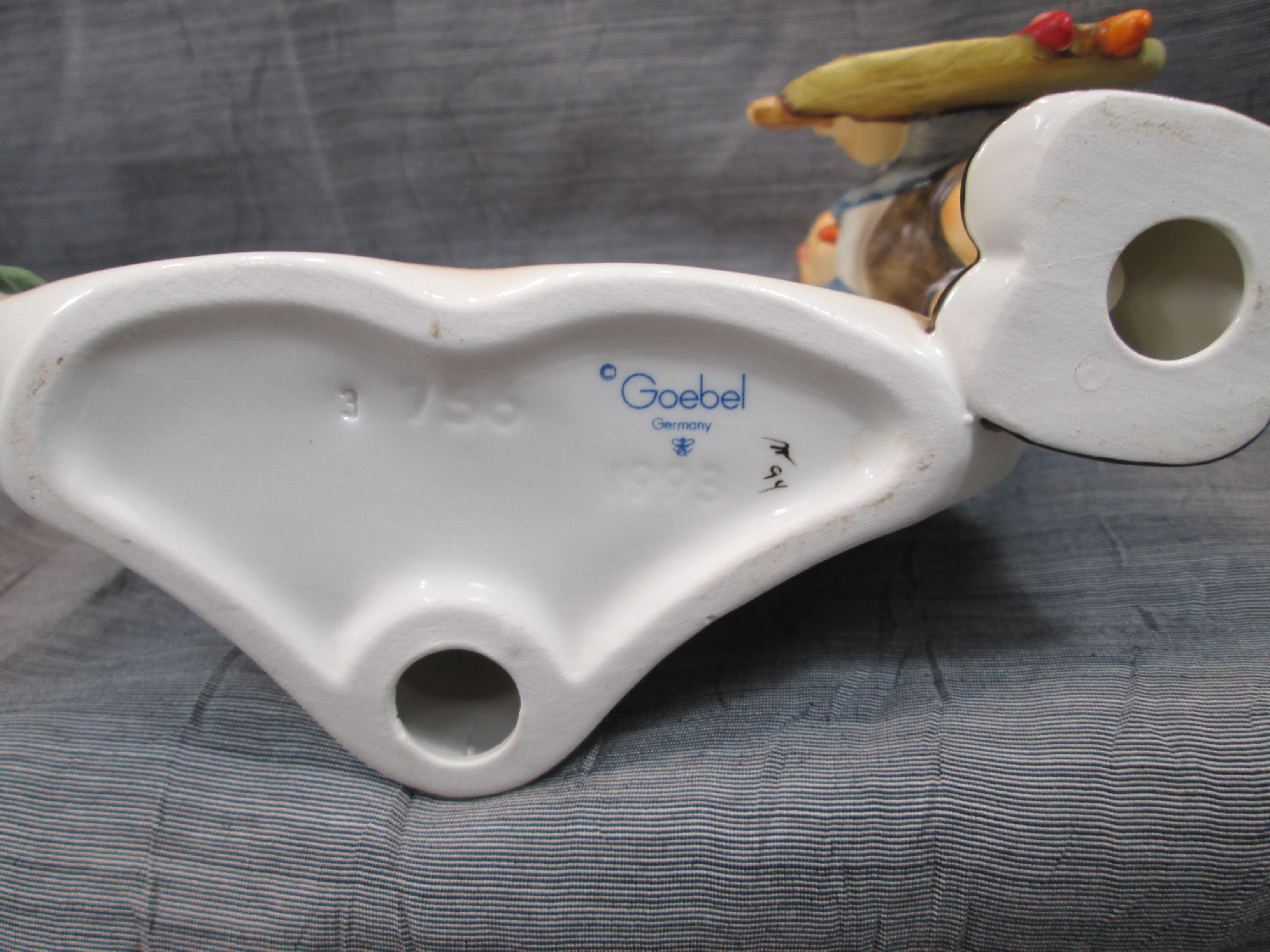 April 19, 2026 - 5 inch tall x 6 inch wide. Base is incised 756 and 1993. Goebel TMK 7 trademark imprinted in blue on bottom of base. Painter hand-initialed and dated in black ink on bottom of base.