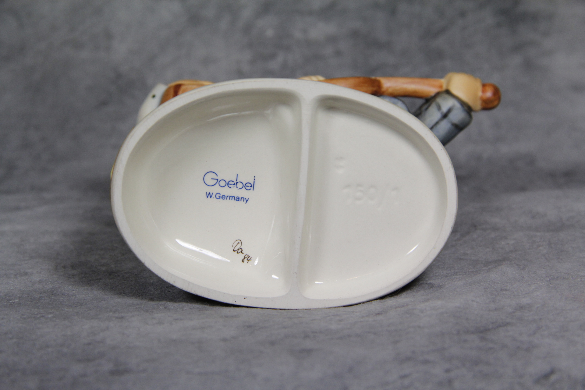 April 19, 2026 - 6 inches tall. Base is incised 150/1. Goebel TMK 6 trademark imprinted in blue on bottom of base. Painter hand-initialed and dated in black ink on bottom of base.
