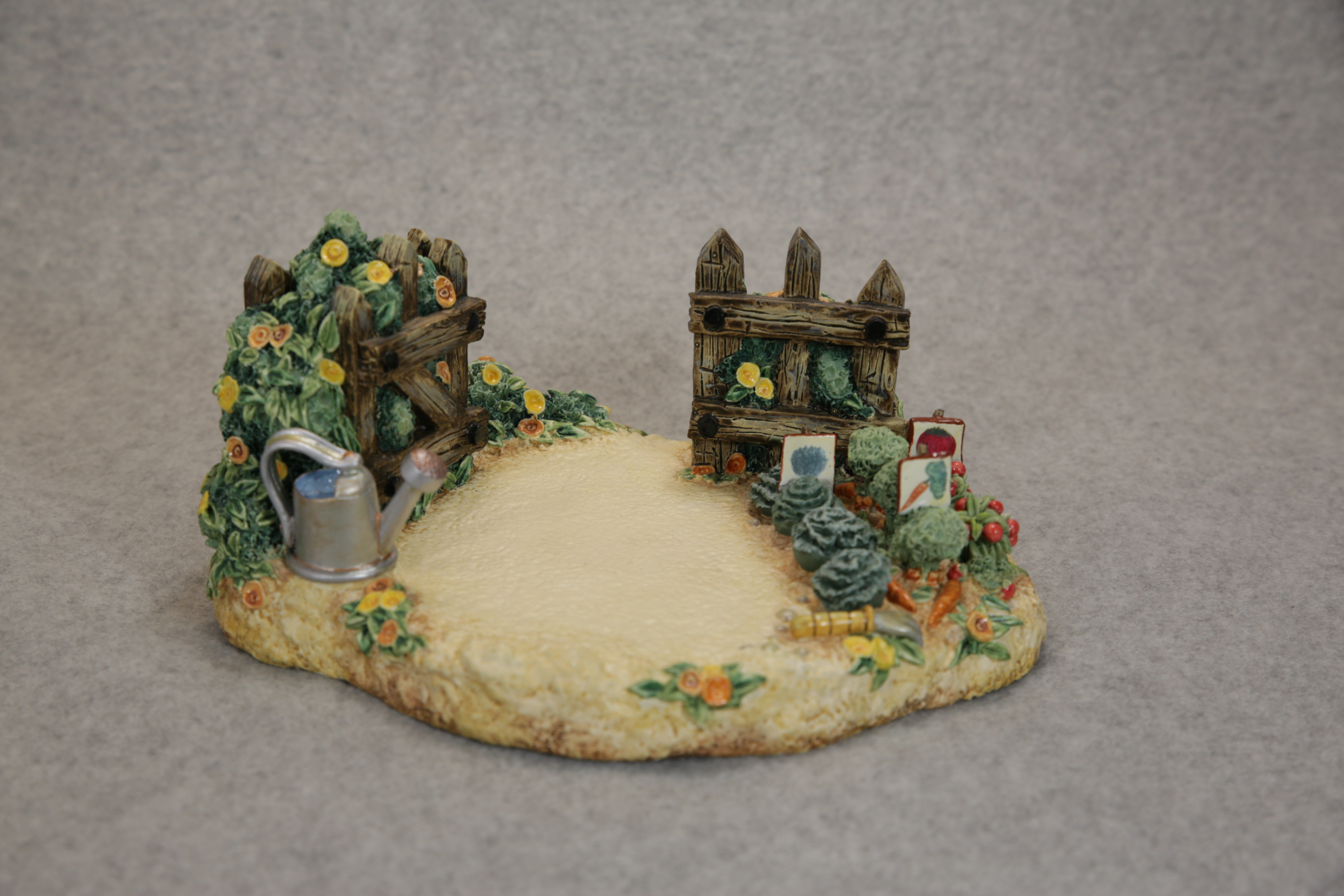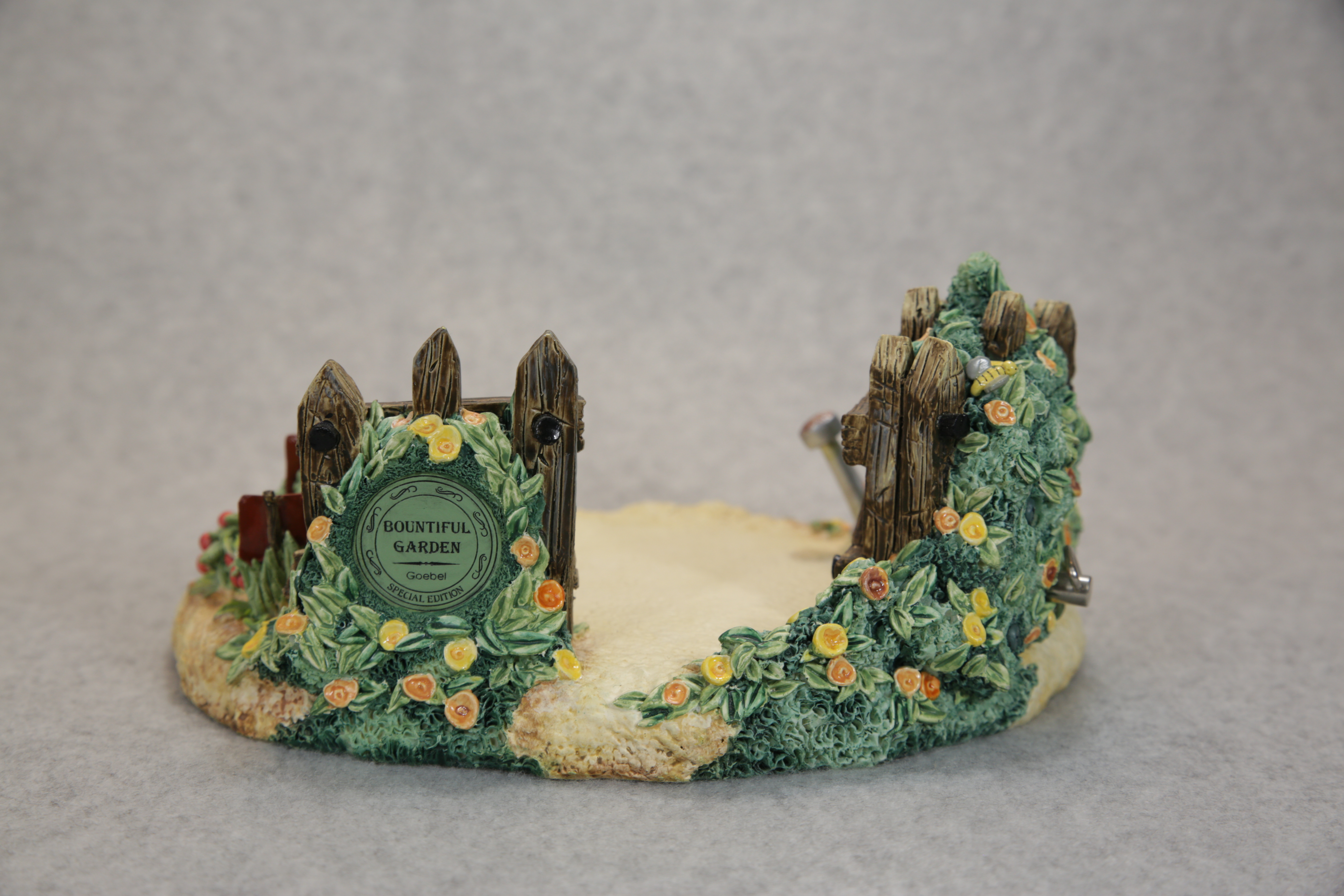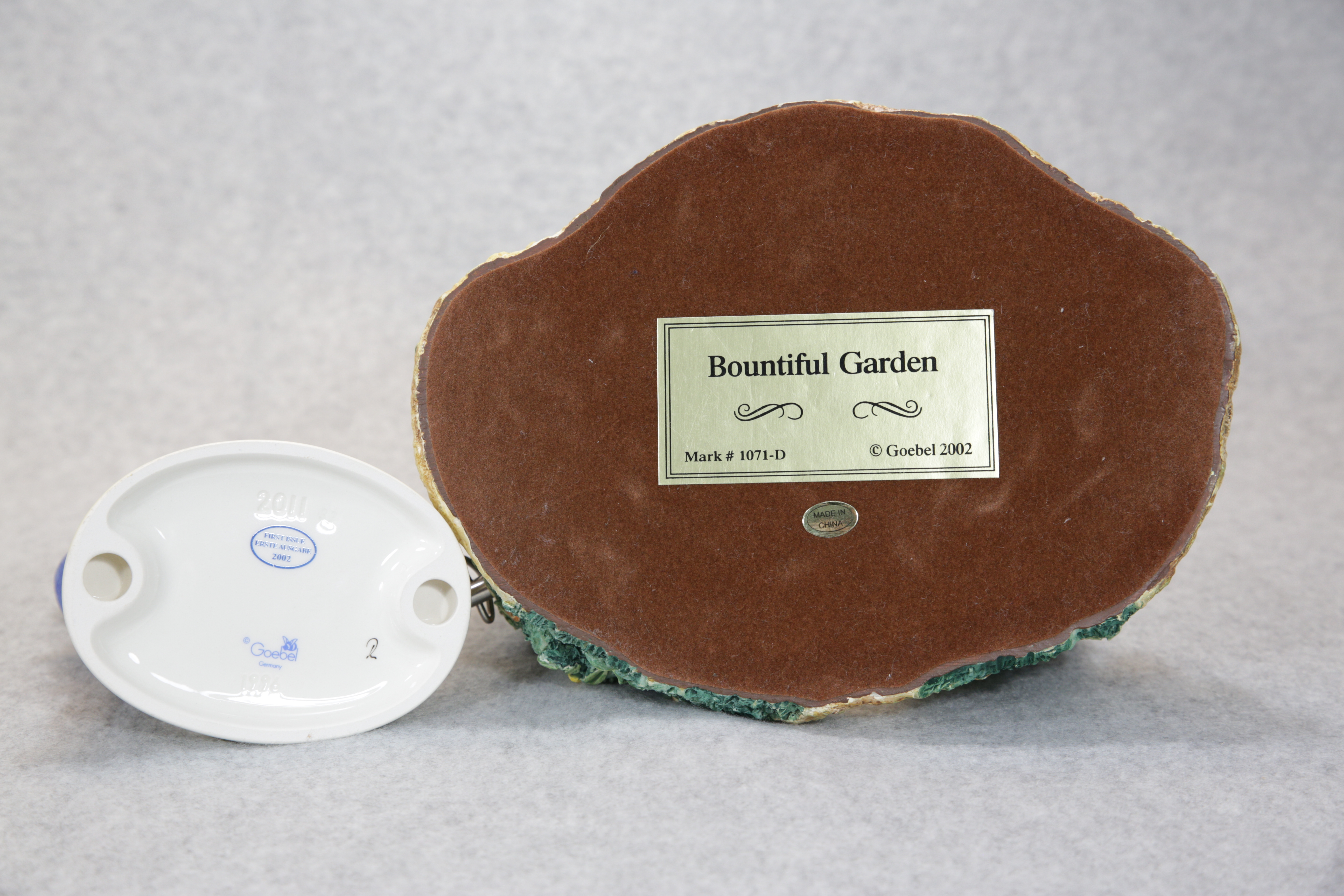 January 16, 2026 - The hummelscape is 3 1/2 inches tall by 7 inches wide by 6 1/4 inches deep. Felt-lined base has gold-foil label reading 'BOUNTIFUL GARDEN Mark #1071-D (c) Goebel 2002'
