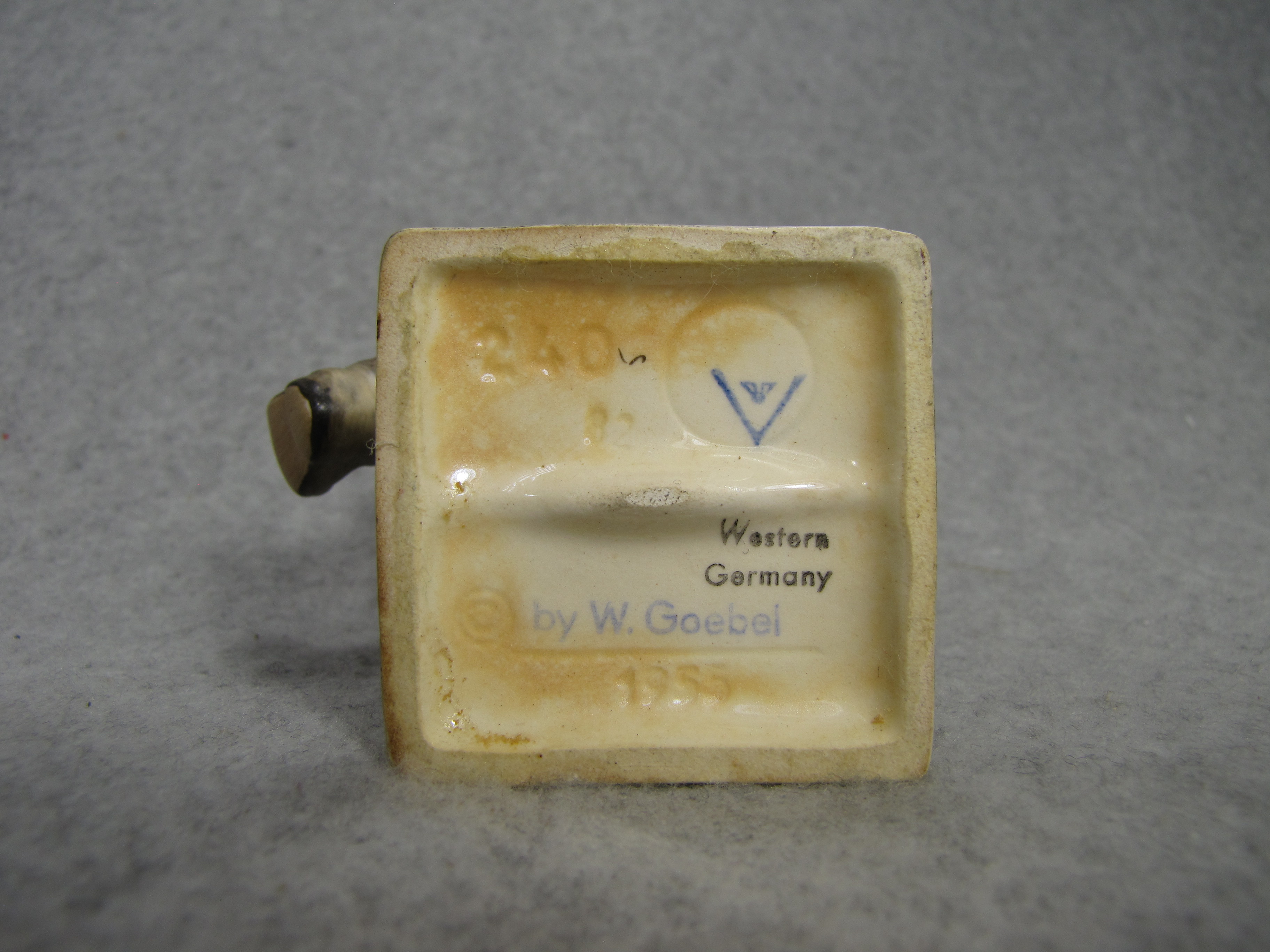 March 13, 2026 - 4 1/2 inches tall. Base is incised 240 and copyright 1955. Goebel TMK 2 trademark and by W. Goebel imprinted in blue on bottom of base. Western Germany stamped in black.